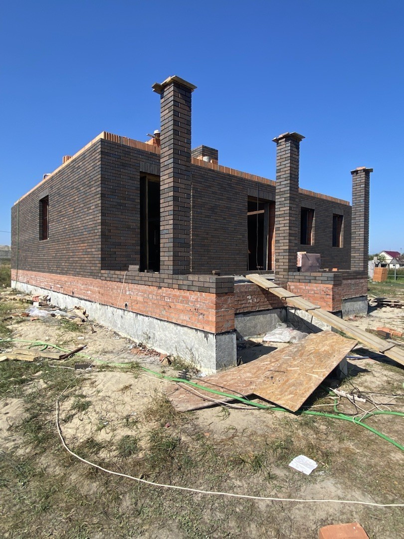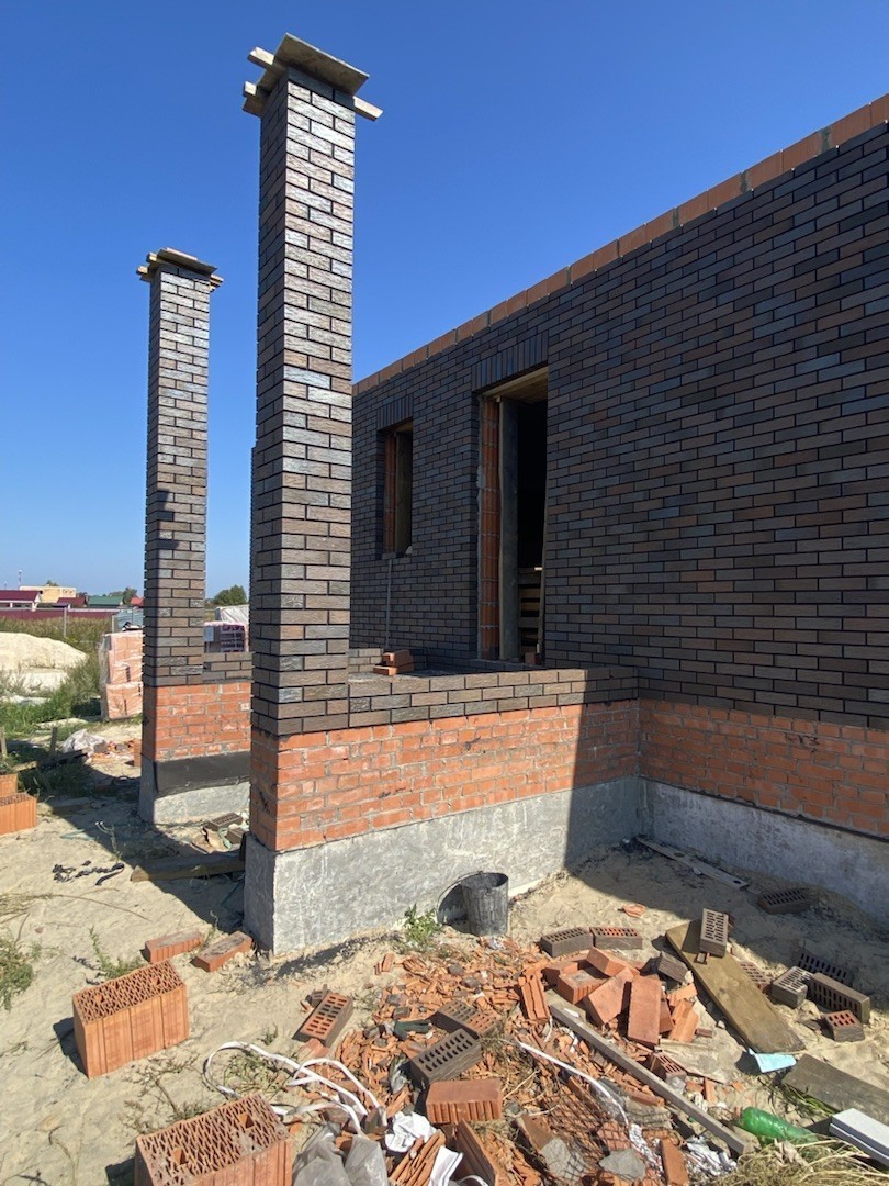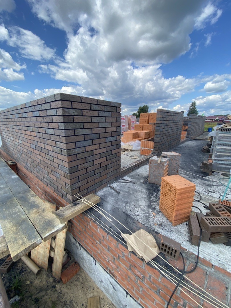 Наружные стены дома – камень керамический 250*219*440 с отделкой керамическим облицовочным кирпичом толщ. 120 мм.